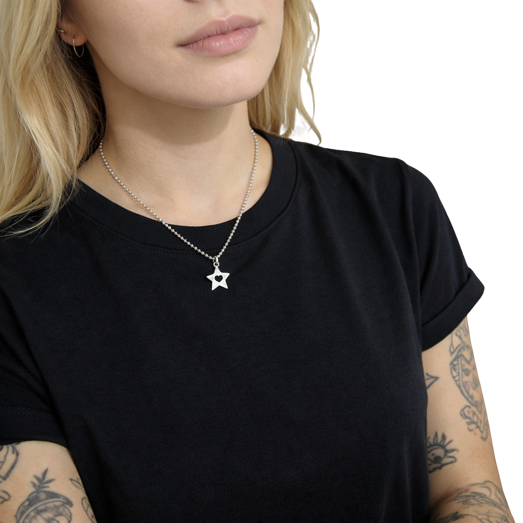 The Heart-In-Star Pendant pairs a clean star form with a heart cutout at its center — simple, balanced, and quietly expressive.